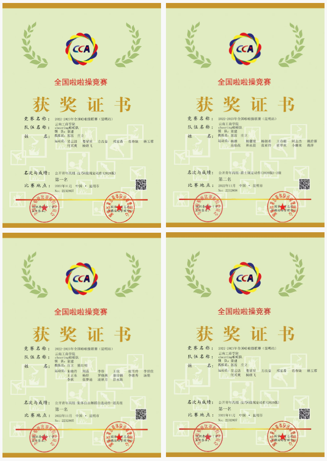由国家体育总局体操运动管理中心主办的2022-2023 年全国啦啦操联赛(昆明站)于11月11-13日在云南省昆明市举行线上比赛,我校由教育学院童建院长带队,庄立、朱新笋、郭雷、熊红明、张健五位老师担任教练员,带领62名参赛队员分别参加五个项目比赛,荣获两项第一名、两项第二名、一项第三名的好成绩!