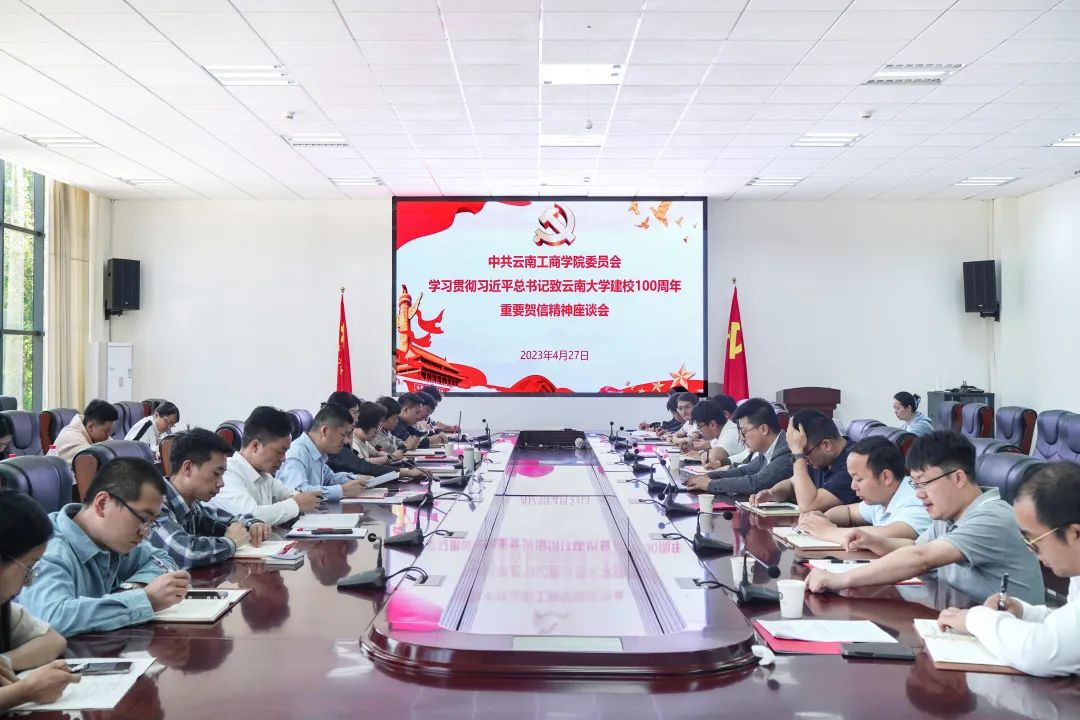 4月27日,云南工商学院召开学习贯彻习近平总书记致云南大学建校100周年重要贺信精神座谈会,通过畅谈学习体会,进一步领悟重要贺信的深邃思想、丰富内涵、重大意义、精神实质。座谈会由党委副书记佘达文主持。
