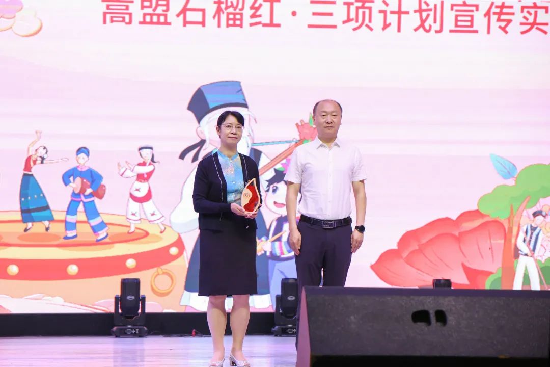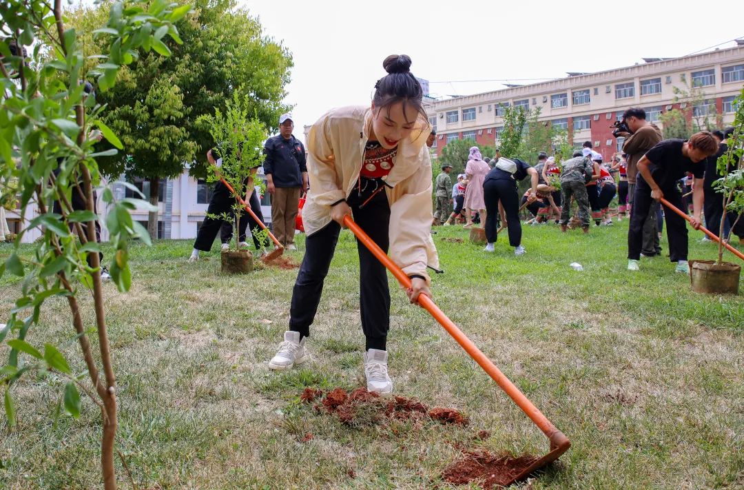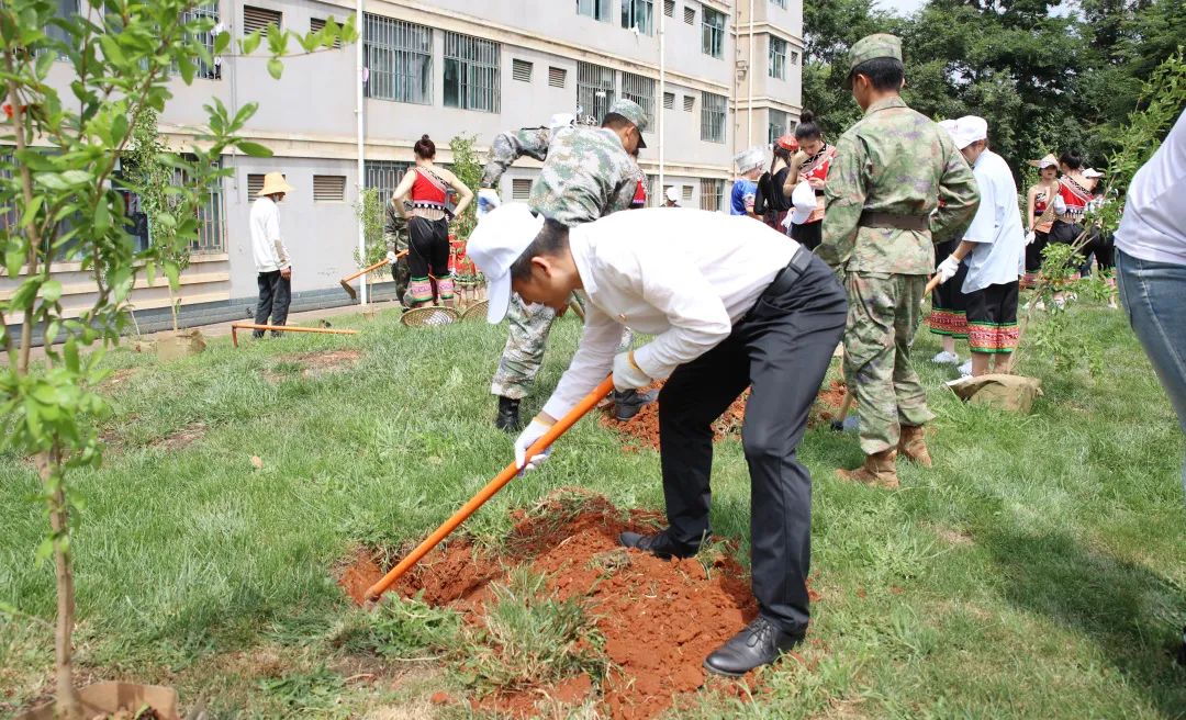 民族大联欢文艺节目结束后,各机关单位代表与身穿各民族服装的师生、新阶企业代表共同种下了56棵石榴树。
