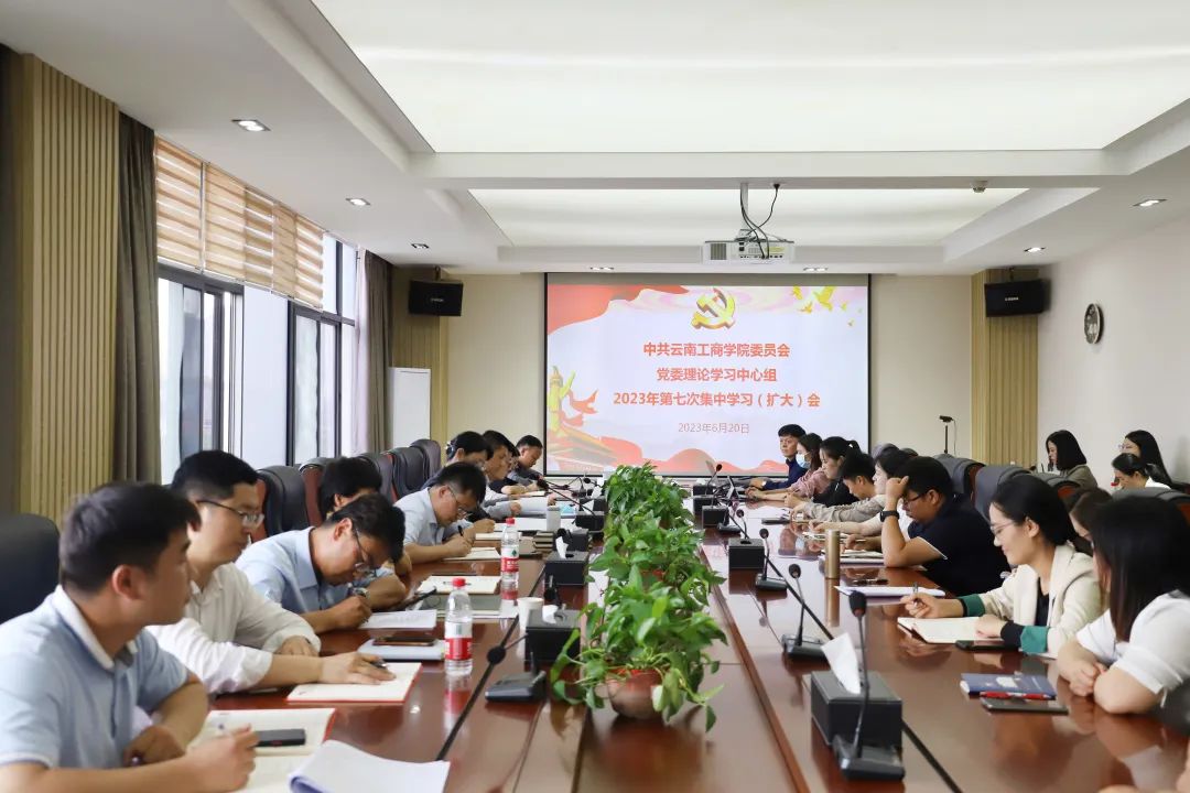 6月20日,云南工商学院党委理论学习中心组召开2023年第七次集体学习(扩大)会议,学校党政领导班子成员,各二级学院,职能部门负责人;各党总支、支部书记,专职组织员参加会议。会议由党委书记李国琼主持。