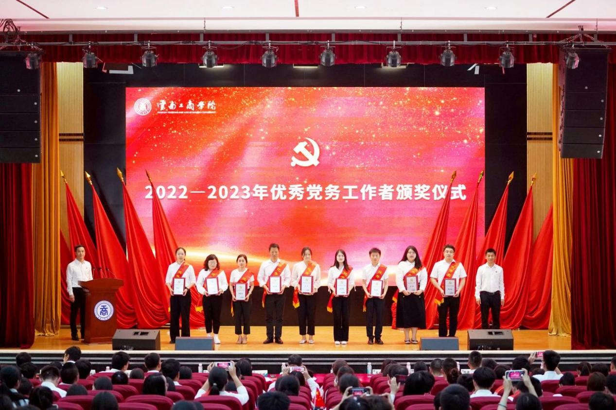 学校领导为优秀共产党员、优秀党务工作者、先进基层党组织和荣获省厅级党建荣誉的党组织颁发奖牌和荣誉证书。优秀共产党员代表吴昆、优秀党务工作者代表邹晓菊、先进基层党组织代表杨华先后发言。