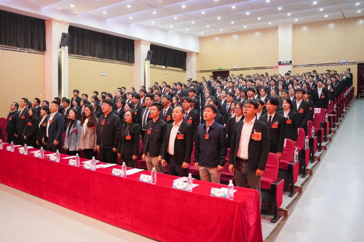 李国琼代表学校党委对大会的召开表示热烈祝贺,她表示,五年来,学校各级团组织始终坚持育人根本,服务青年成长成才,坚持从严治团,推动团学组织改革落地有声,将青年工作融入学校“三全育人”和“大思政”工作格局,在巩固党的青年群众基础、引领青年建功立业、服务青年成长成才、加强团的自身建设等方面做出了突出成绩,得到上级的充分肯定和认可。希望各级团组织继续坚定理想信念,强化理论武装;锤炼能力本领,勇担时代重任;加强自身建设,推动工作创新,为区域经济发展贡献更多力量。