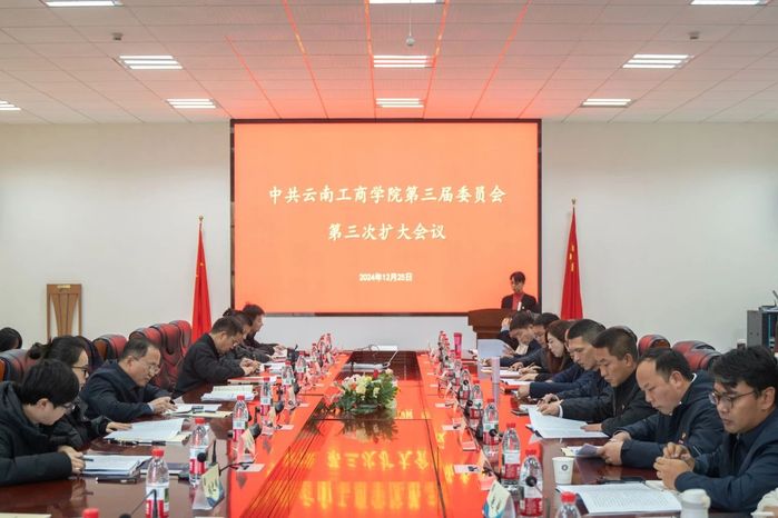 12月25日,中共云南工商学院第三届委员会第三次扩大会议召开。会议系统总结过去一年取得的成绩和经验,梳理存在的问题和不足,安排部署2025年重点工作任务。