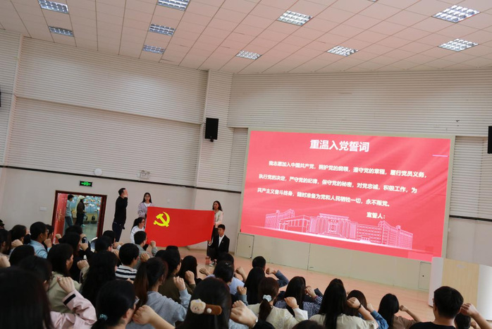 随后,活动进入重温入党誓词环节。党委副书记、院长马建同志领誓,全体师生党员面向党旗,庄严宣誓:“我志愿加入中国共产党……”铿锵誓言中,大家重拾入党初心,回顾庄严承诺,坚定了理想信念。这一环节强化了党员对党的忠诚和纪律意识。