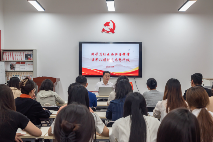 周刚提到,习近平总书记到云南丽江调研时,对云南的特色产业给予了关注。强调云南凭借其独特的区位优势,在推动产业转型升级,对外开放、自贸区建设、生态优先、绿色发展以及民族团结、边疆稳固等方面发挥着重要作用。他鼓励师生党员们,要对这片土地充满信心,更要对自己有信心,努力提升自己,练就真才实学。在未来就业时,有机会要勇敢地走出去,去闯荡、去历练,以开放的心态接纳新事物,不断丰富自己的阅历和经验。