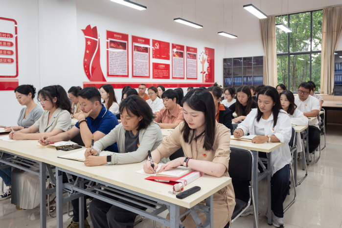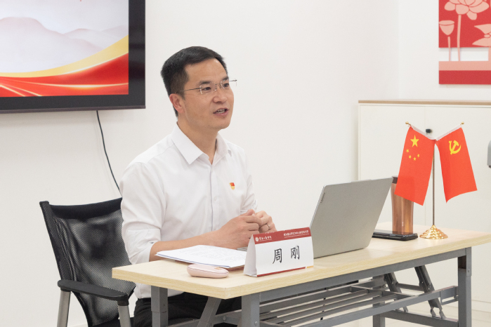 2025年6月,校党委副书记、常务副校长周刚到文法学院,为学院党员和入党积极分子、学生代表讲授党课。