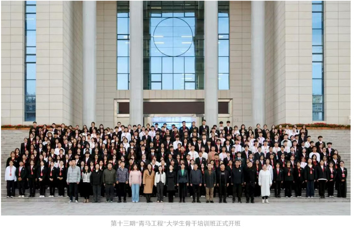 青年马克思主义者培养工程(简称“青马工程”)是党着眼于事业薪火相传、后继有人的战略举措。为深入学习贯彻习近平新时代中国特色社会主义思想,培养一批信仰坚定、能力突出、素质过硬的新时代青年骨干。11月12日,云南工商学院隆重举行第十三期“青马工程”大学生骨干培训班开班仪式。学校党委书记李国琼、党委宣传部部长张之明、校团委书记盛晓婷、校团委副书记杨雅楠,各二级学院党委书记、团总支书记以及285名青马学员共同参加仪式,携手开启新一期的学习与实践征程。