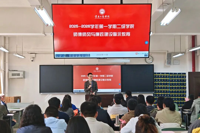 他指出,全体教师必须严守师德底线,严格遵守《新时代高校教师职业行为十项准则》,在课堂教学、实训指导、学生交流等场景中坚守职业操守,维护教师应有的专业形象;在设备采购、耗材领用、校企合作等重点流程中,要严格执行制度,不得违规变通,尤其要把好询价、验收等关键节点,切实防范廉洁风险;各级管理干部要落实“一岗双责”,强化日常工作的监督提醒,做到发现苗头性问题及时制止、发现倾向性问题及时上报,共同营造守纪律、重规范的学院风气。