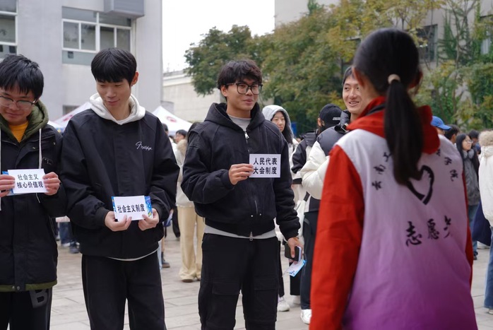 本次普法嘉年华吸引2000余名师生参与,学校纪检监察处、文法学院、保卫处联合县委政法委、县法院、县检察院等多家单位的普法志愿服务队,精心设置七大功能区,以师生喜闻乐见的方式,让法治知识从“文本”走向“生活”,让清廉理念融入“日常”。