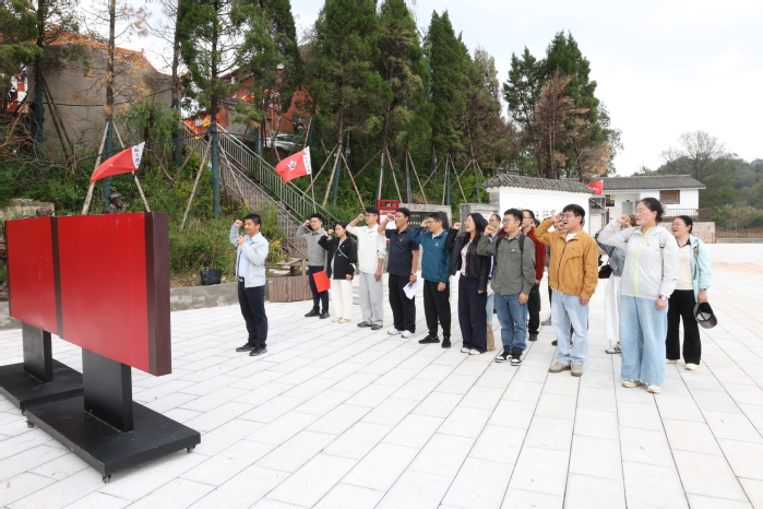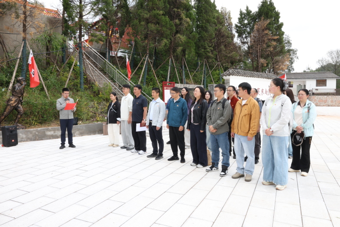 为赓续红色血脉,弘扬伟大长征精神,深化党建带群建工作实效,4月27日,云南工商学院职能部门党委第一党支部组织全体党员、入党积极分子及自愿参与群众,前往嵩明县东村镇东村红色教育基地,开展“追寻红色足迹,传承长征精神,砥砺初心使命”主题党日活动,在实地研学中淬炼党性、凝心聚力。学校党委副书记佘达文同志、党委委员、宣传部部长张之明以普通党员身份参加。