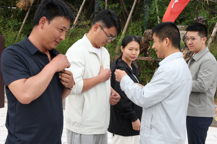 佘达文现场为预备党员佩戴党员徽章,活动合并开展预备党员入党宣誓、正式党员重温入党誓词。全体党员面向党旗,高举右手、紧握拳头,庄严宣誓,铮铮誓言铿锵有力,初心使命坚定不移。